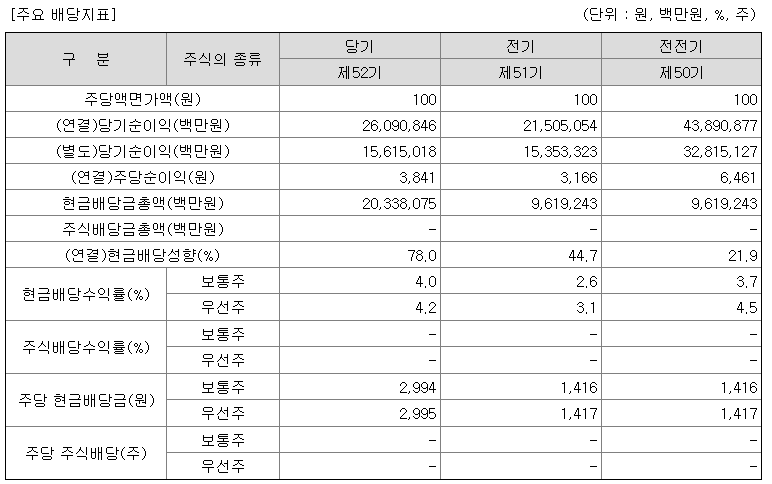 위에 표에서 보시다시피, 삼성전자의 2020년 기준 배당률은 보통주 기준 4%입니다.